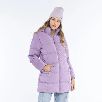 Detalles funcionales: cuello alto, cierre central a doble vía, rib en puños, capota removible y tres bolsillos prácticos.